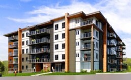 Construction de 42 unités de condos locatifs de 700 à 994 pi2 et 1 étage de stationnement.